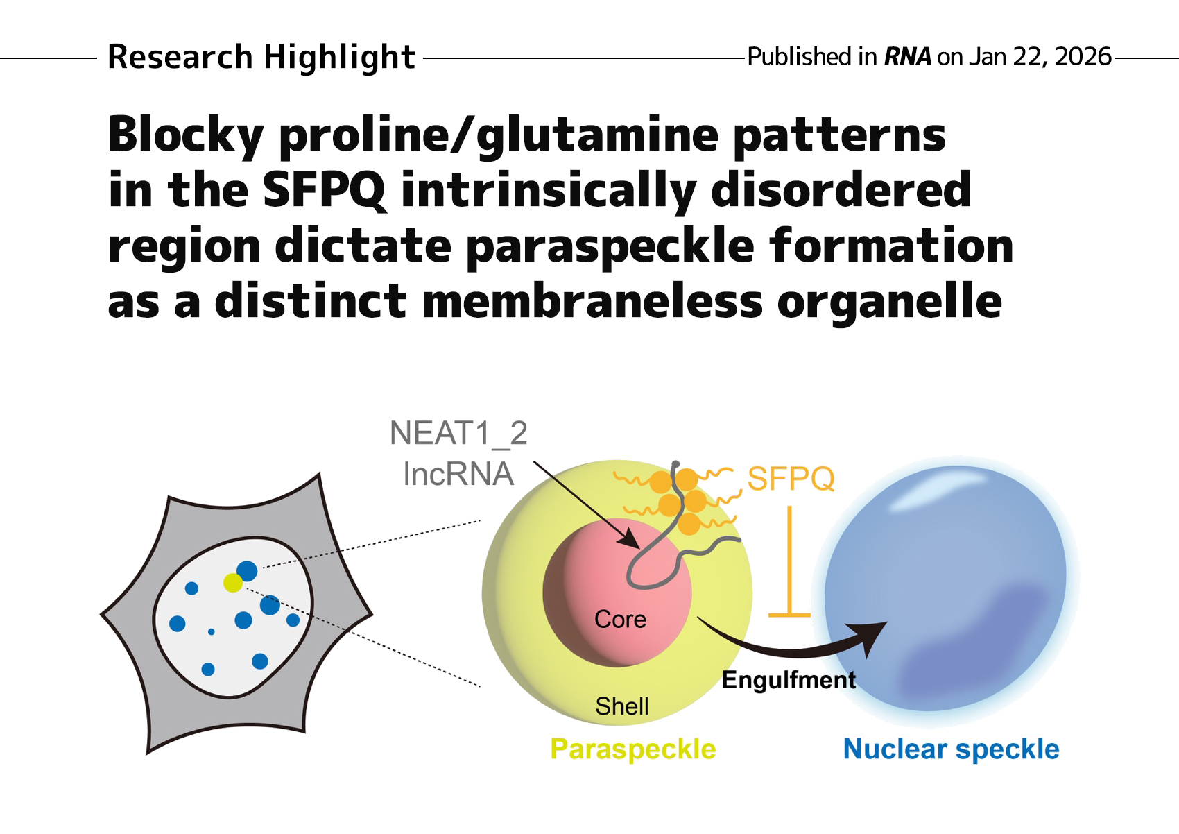 2026.1.29 Research Highlights Blocky proline/glutamine patterns in the SFPQ intrinsically disordered region dictate paraspeckle formation as a distinct membraneless organelle