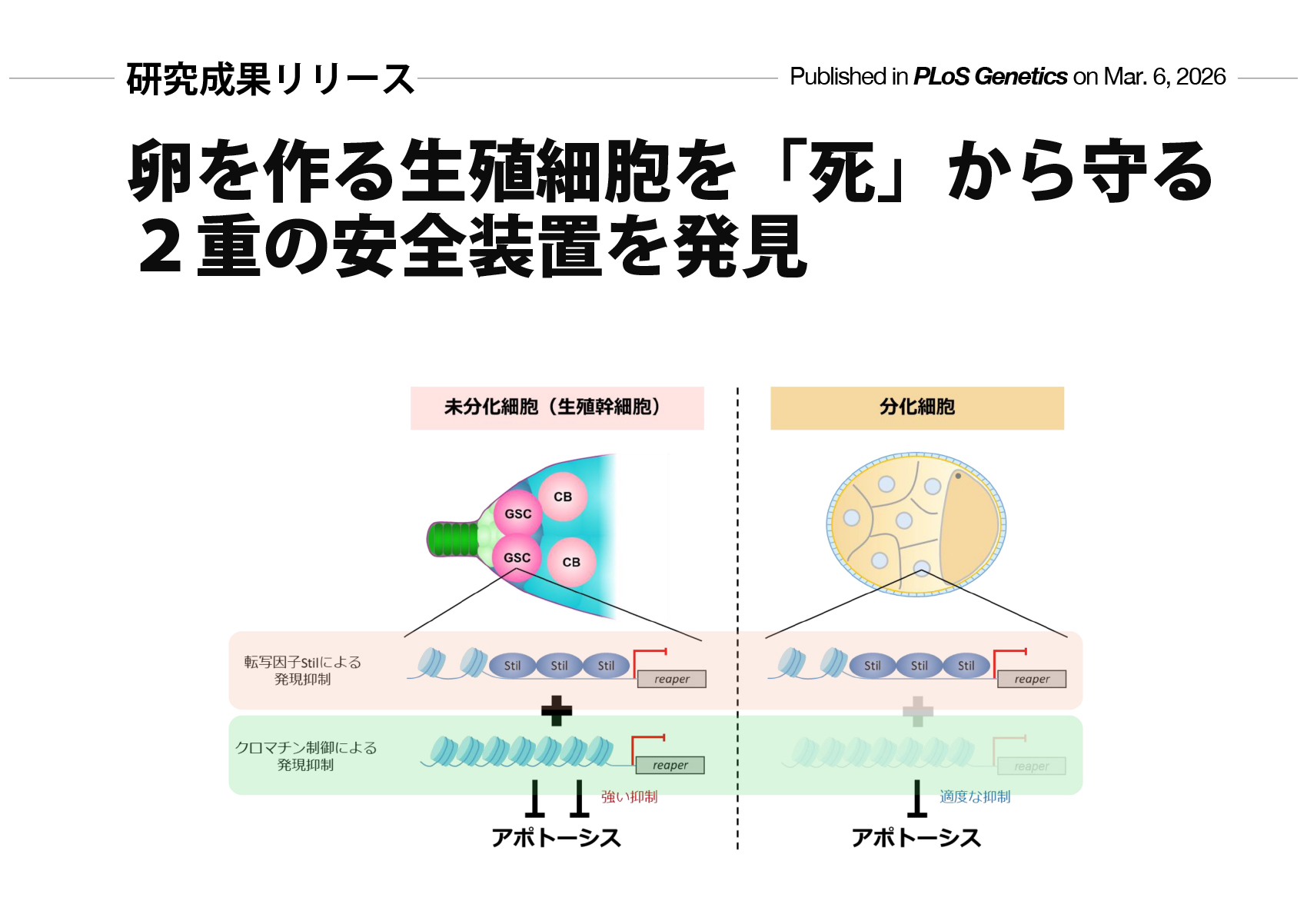 2026.3.9 研究成果 卵を作る生殖細胞を「死」から守る2重の安全装置を発見