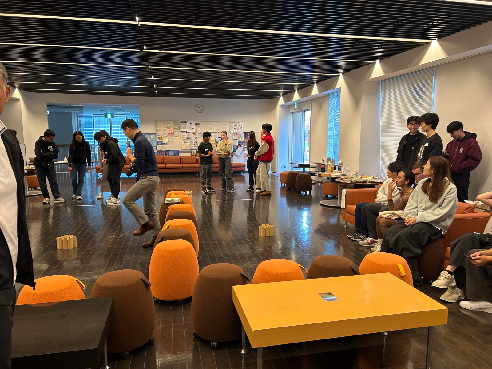 - 続いてはアイスブレイク!今回は「モルック」というゲームをしました。
