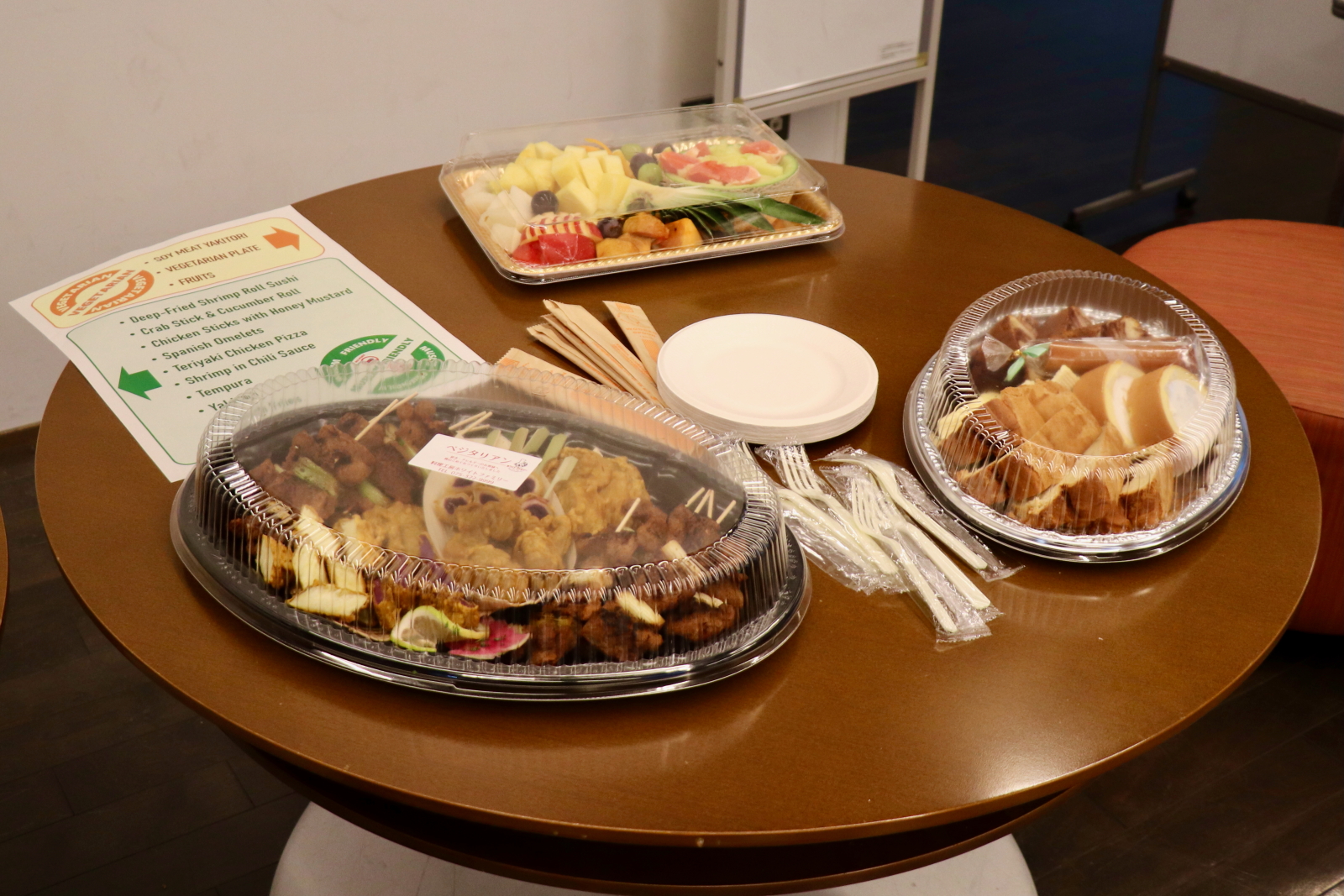 - 乾杯をして、ケータリングをいただきます。お料理はどれも好評でした。