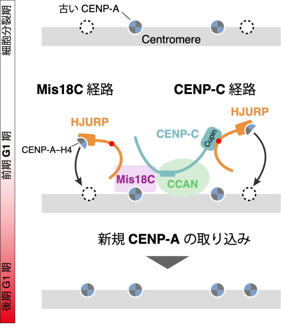 - 既知の「Mis18C経路」と並行する、「CENP-C経路」の存在を発見し、CENP-Aが1箇所に取り込まれる分子機構の新たな仕組みが明らかに