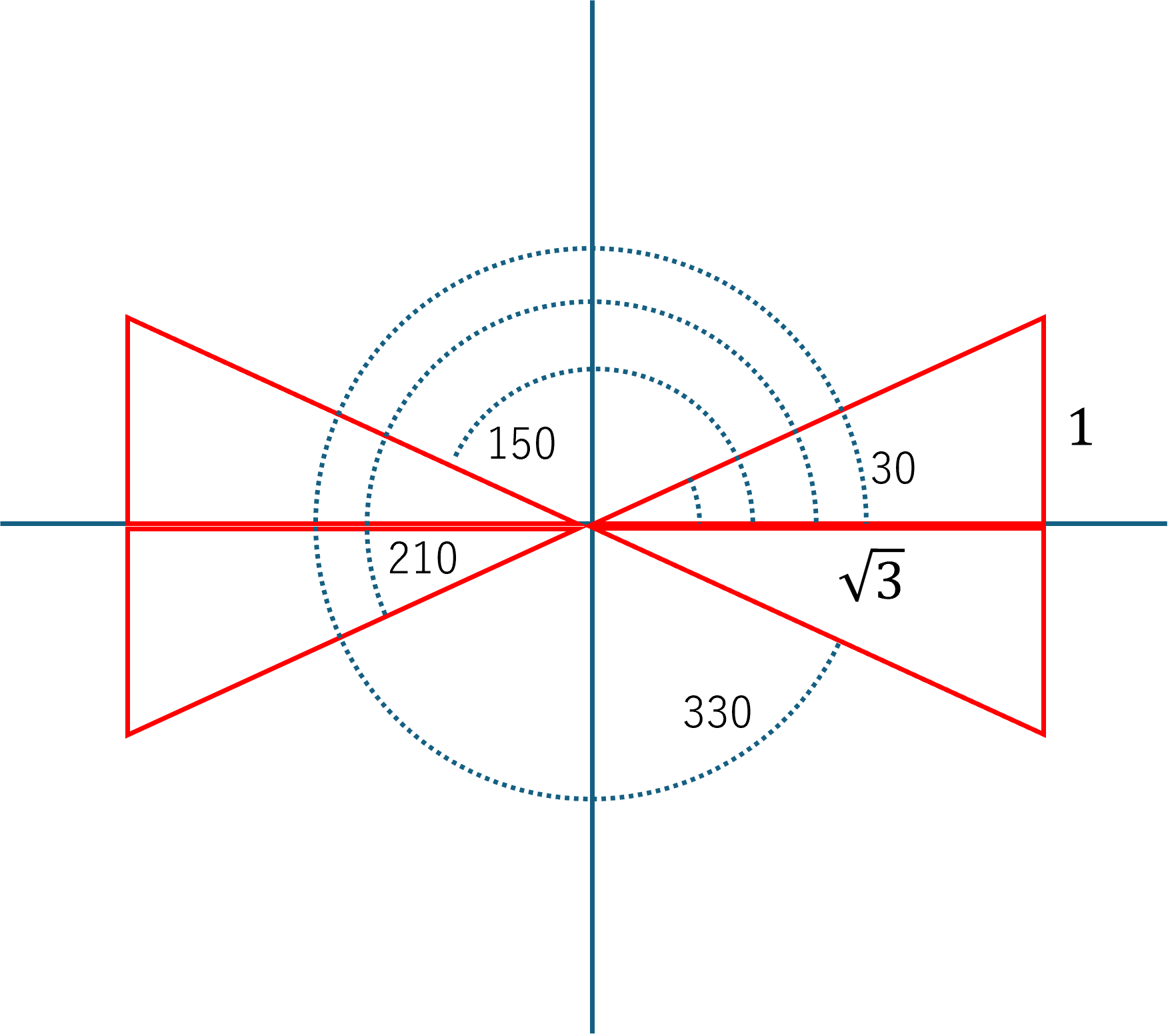 θ=30, 150, 210, 330度,で考えてみると,