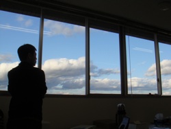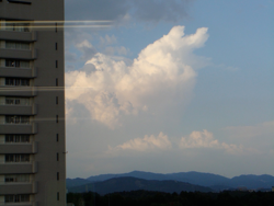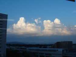 窓からは入道雲がよく見えます。8月8日、予期せず研究室から花火が!