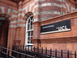 ロンドンUCLでのセミナー。さすがに建物が伝統的で重厚感が。とはいえ、中身はやはり万国共通(左下)。