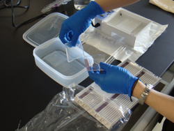 ここでのDNA GEL第一号!バッチリ。久々に1からバッファー作って、少し緊張。学生気分?